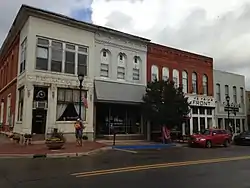 The Buchanan Downtown Historic District encompasses almost the entirety of Buchanan's commercial center. The district contains 40 buildings, along with a millrace, culvert, and alley. The buildings range from one to three stories tall, and date from 1855 to 1966. All the buildings in the district are constructed of brick with three exceptions: the Pears Mill, the 1855 Conant-Parkinson Building at 111 Main, and another commercial building on Front Street. The main section of the district is along Front Street, which features all of the large commercial blocks in the downtown area.[2]