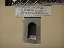 At the beginning of the 1900s, the laws on selling wine changed, the palaces were subdivided, and many buchettas were bricked up, or converted to doorbells or mailboxes or niches. A flood in 1966 destroyed many wooden components,[2] but exposed at least one buchetta which had been plastered over, leading to its restoration.[3]