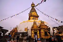 - ↑ Inden, Ronald. "Ritual, Authority, And Cycle Time in Hindu Kingship." In JF Richards, ed., Kingship and Authority in South Asia. New Delhi: Oxford University Press, 1998, p.67, 55"before the eighth century, the Buddha was accorded the position of universal deity and ceremonies through which a king attained to imperial status were elaborate donative ceremonies entailing gifts to Buddhist monks and the installation of a symbolic Buddha in a stupa....This pattern changed in the eighth century. The Buddha was replaced as the supreme, imperial deity by one of the Hindu gods (except under the Palas of eastern India, the Buddha's homeland)...Previously the Buddha had been accorded imperial-style worship (puja). Now as one of the Hindu gods replaced the Buddha at the imperial centre and pinnacle of the cosmo-political system, the image or symbol of the Hindu god comes to be housed in a monumental temple and given increasingly elaborate imperial-style puja worship."