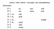 Two documented dialects of Buena Vista were Tulamni and Hometwali.[4] Tuhohi (also called Tohohai or Tuhohayi) was a similar dialect, spoken by a tribe who "lived among channels and sloughs of Kern River where they enter Tulare Lake."[5]