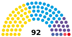The Chamber of Deputies of Buenos Aires Province (Spanish: Cámara de Diputados de la Provincia de Buenos Aires) is the lower house of the Legislature of Buenos Aires Province, the largest and most populous of Argentina's provinces. It is made up of 92 deputies elected in eight multi-member constituencies known as Electoral Sections. The number of deputies that correspond to each of the electoral sections is proportional to their population, as observed in the results of every nationwide census conducted in Argentina every 10 years. Seats may only be added to adjust the proportionality of each section, but never reduced.[1]