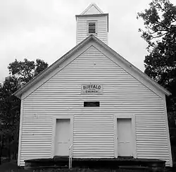 Buffalo Church is a historic Methodist church located near Palestine, Wirt County, West Virginia, United States. It was built between 1884 and 1886, and is a one-story, oblong log structure with exterior weatherboarding of beech wood and interior finish of wood boards on walls and ceiling. It is painted white on the inside and outside. Also on the property is the church cemetery, and three outbuildings: two pit toilets and a storage building that were constructed by workers associated with the Work Projects Administration.[2]