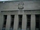 The Buffalo Memorial Auditorium was a public works project designed by Green & James to replace the aging Broadway Auditorium and Fort Erie's recently collapsed Peace Bridge Arena. In June 1938, city officials sent a loan and grant application to the Public Works Administration for funds to build the structure. The approval of the $1.2 million grant was announced in Washington, D.C., on October 7, 1938.[2] Construction at the junction of the Erie Canal and Main-Hamburg Canal began on November 30, 1939.[3]