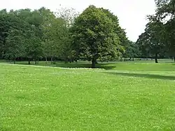 In 1590, victims of the plague were buried in a pit in Hart Hill Meadow, which had been bought by the local authorities.[1][2] Hart Hill is one of the areas that makes up the modern park, and is found near the junction of Eccles Old Road and Weaste Lane.