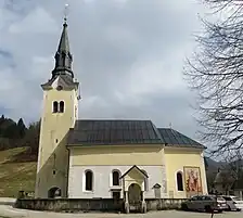 The local church is dedicated to Saint Clement.[4] Its rectangular nave indicates Romanesque origins, but the church was rebuilt several times. There is a fresco of Saint Christopher on the south wall of the sanctuary painted by Janez Gosar (1830–1887).[5] Some of the frescoes were painted by Jernej of Loka. The main altar dates to 1851 and the Stations of the Cross are by Leopold Layer.[6]