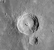 Bullialdus is a lunar impact crater located in the western part of the Mare Nubium. It was named after French astronomer Ismaël Boulliau.[1] To the north by north-west is the broken-rimmed and lava-flooded crater Lubiniezky. South-west of Bullialdus lies the smaller crater König.
