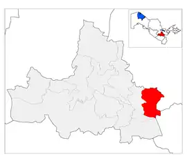 Bulungʻur District is a district of Samarqand Region in Uzbekistan. The capital lies at the city Bulungʻur.[1] It has an area of 760 km2 (290 sq mi)[2] and its population is 189,600 (2021 est.).[3]