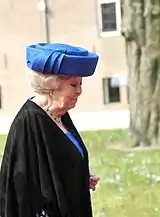 Princess Beatrix of the Netherlands favours a bumper-brim style, wearing a blue version during a 2013 visit to Amsterdam with President Putin. She also wore a distinctive multiple-rimmed bumper design in black straw for the memorial service to Richard von Weizsaecker in February 2015.