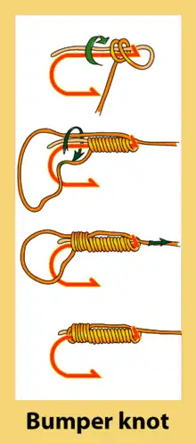 In fishing, a bumper knot (also known as a bait loop or egg loop) can be used to secure soft or loose bait, including clusters of eggs, to a hook.