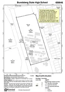 - ↑ DPW Plan 20596-2/3-1, "Bundaberg High School, architectural record site plan", May 1978.
