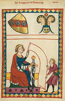 The Burggraf von Rietenburg[1] (died after 1185) was a Middle High German lyric poet in the Minnesang tradition. He was probably the younger brother of the Burggraf von Regensburg. All seven of his surviving stanzas are concerned with courtly love.[2]