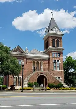 Burke County Courthouse in Waynesboro, Georgia is a "carpenter Romanesque" (perhaps a vernacular Romanesque Revival) building completed in 1857.[2] It is one of just four courthouses in Georgia that were built in the 1850s and still serve as courthouses.[3] It was listed on the National Register of Historic Places in 1980.[1] L.F. Goodrich is credited as the building's architect (likely for renovations or redesign work) and he also designed the Jenkins County Courthouse in Millen, Georgia.[4]