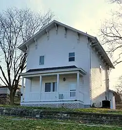 The building served as a passenger station until 1868 when the railroad bridge over the Mississippi River was completed and a larger station in Burlington was required. Prior to that year a transfer ferry boat, the President, carried railroad cars and passengers across the river in warmer weather. Passengers would have to walk across the river ice in winter.[2] The railroad continued to use the building for office space until 1884. In that year the frame, Italianate structure was moved from its Main and Market Streets location so the railroad tracks could be widened. After its use by the railroad, it was converted into a residence. The house that presently sits next door to this one is the old baggage building that was moved at the same time and converted for residential use. The building was listed on the National Register of Historic Places in 1976.[1]