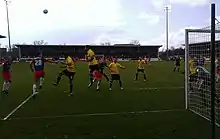 Burton missed out on promotion on goal average in 1970–71, but finished as runners-up the following season and were promoted back to the Premier Division.[1] The next two seasons saw them relegated, and then promoted back to the Premier Division again.[1] They stayed in the same division until being relegated once more at the end of 1976–77.[1] League rearrangements saw Burton moved to the Northern Premier League, because of their location in the central Midlands, and then back to the Southern League in 1987–88, the season after losing in a replayed FA Trophy Final to Kidderminster Harriers.[1]