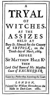 Two specific trials in 1645 and 1662 became historically well known. The 1645 trial "facilitated" by the Witchfinder General saw 18 people executed in one day. The judgment by the future Lord Chief Justice of England and Wales, Sir Matthew Hale in the 1662 trial acted as a powerful influence on the continuing persecution of witches in England and similar persecutions in the American Colonies.[1]