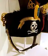 The popularity of the military headdress in its hussar form reached a height in the years immediately before World War I (1914–1918). It was widely worn in the Belgian (Guides and field artillery),[2] British (hussars, yeomanry, and horse artillery), Dutch (cavalry and artillery),[3] Italian (light cavalry)[4] German (hussars),[5] Russian (hussars),[6], Serbian (Royal Guard) and Spanish (hussars and mounted cazadores) armies.[7] Several armies have continued to use the headdress as a part of their full dress uniforms.
