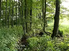 The river valley on its upper course is protected as the Kalské údolí nature monument. It has an area of 22.9 ha (57 acres) and the reasons for protection are the same as in the case of Údolí Bystřice.[6]