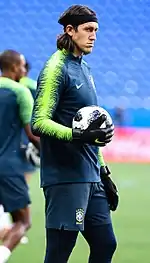 He was called up by Brazil coach Dunga in 2015 for two games of 2018 FIFA World Cup qualification and was called up again three times by Tite in the second semester of 2017 for four consecutive games of the 2018 FIFA World Cup qualification[6] and two friendlies.[7] He was given his first cap with the top eleven team on 10 November 2017, coming in as a substitute for Alisson for the second half of the friendly against Japan. His participation was minimal due to Japan's limited attempts on goal, but he ended up conceding two goals from Makino and Sugimoto, though the latter's was nullified.[8]