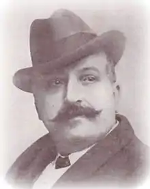 Cândido Aragonez de Faria (artist's name Faria, 12 August 1849 in Laranjeiras, Sergipe (Brasil) – 17 December 1911 in Paris) was a Brazilian caricaturist, painter, lithographer and poster designer who emigrated to France in 1882. Faria designed posters for performers in café-chantants and the cinema but also for music scores (lithographies in small and large formats). The collective art work of his workshop, which continued after his death, was signed Atelier Faria.