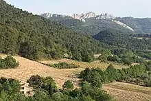 Séguret - This mountain village is located on the eastern side of the river Oèveze. It is ancient regarding wine as Pliny the Elder mentions it in his natural history. However it is only recently that the 220 ha. of the appellation has attracted attention. The terroir is interesting - chalk at altitude (near the Dentelles de Montmirail), resulting in fine wines from the independent producers.[10]