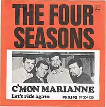"C'mon Marianne" hit the charts less than a month after lead singer Frankie Valli's "solo" (with Four Seasons participation) hit, "Can't Take My Eyes Off You", hit No. 2. Originally on the New Gold Hits album, a different version of the song was distributed on promotional singles distributed to disk jockeys and released commercially, but when people did not react positively to a recording that was slower than and mixed differently from the "more familiar" LP version, the single was replaced with the album version. Ultimately, "C'mon Marianne" reached the No. 9 position on the Hot 100.[3]