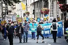 On 8 August 2020, more than 30 protests across the UK took place in support of National Health Service staff in response to the government not extending a planned pay rise to nurses.[27][28]