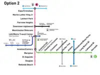 - ↑ "Crenshaw/LAX Line Operations Plan Being Debated, Will Affect Green Line". streetsblog.org. June 22, 2018. Archived from the original on June 8, 2019. Retrieved December 6, 2018.