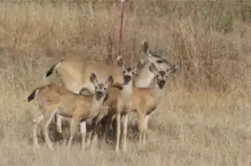 Fawn survival and overall California mule deer (Odocoileus hemionus californicus) numbers on the Cañada de Los Osos Ecological Reserve are higher than other parts of the Diablo Range, coinciding with water development, protection from livestock, and other habitat improvements on the Reserve over the last 20 years. Over 40 springs have been upgraded by removing old livestock troughs and replacing them with small ground-level wildlife watering facilities, or wildlife drinkers. The drinkers provide high quality clean water compared to stock ponds that dry up or have poor water quality by mid-summer.