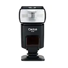 In 2014, Cactus released its first wireless flash RF60 along with Cactus V6. Cactus RF60 has a built-in V6. Therefore, it can receive wireless triggering signal from a V6 and fire itself accordingly without having to attach an external V6 to the flash. When using with Cactus V6, both power output and zoom level of the RF60 can be adjusted remotely.
