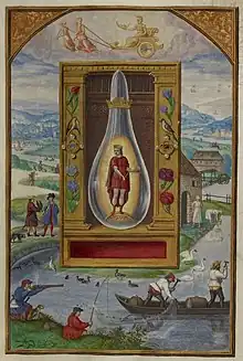 There are a few other examples of use in this period. It may have been used as a symbol by Sir William Butts, physician to Henry VIII.[3] Similarly, physician John Caius, founder of Caius College, Cambridge, and at the time President of the Royal College of Physicians, during official visits to his eponymous college, had carried before him a silver caduceus on a cushion, and later presented this artefact to the college, where it remains in the college's possession.[16] This use was adduced by the medical historian (and primary apologist for the use of the caduceus in a medical context) Fielding Garrison to support his argument that the caduceus was used as a symbol of medicine as far back as the 16th century. However, as Walter Friedlander noted, "what Caius used was a non-specific herald's wand, rather than the caduceus of Hermes." In support of this assertion he quotes Caius's own words on why he chose a herald's wand as a symbol, making it clear that he chose it as a symbol of prudence.[1] This same passage was also earlier referenced by Engle in refuting Garrison's claim. Engle and Friedlander are not the only ones to have noted that the use of the Caduceus by Caius had nothing to do with supposed medical symbolism; as indicated in a publication produced by the Royal College of Physicians itself: "[...] by introducing the caduceus into the ceremony of the College of Physicians, Caius unintentionally added to the confusion between the two emblems for later times, when few people understand the visual signs with which he was so familiar."[17]