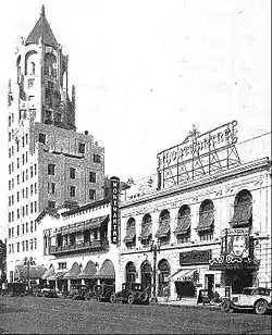 In 1919, Charles E. Toberman bought the property at 6763 Hollywood Boulevard, and three years later, built a real estate office on the lot.[2] The building, run by Meyer & Holler, included a first floor bank and Café Montmartre on the second floor. Café Montmartre was the first popular nightclub on the boulevard after Adolph 'Eddie' Brandstatter opened it in 1923. Given the dramatic growth of the American film industry in Hollywood at the time, it became a "worldwide center for celebrity and nightlife" during the 1920s.[3] Gregory Paul Williams, author of The Story of Hollywood: An Illustrated History, describes it as the first successful café in Hollywood, stating that it became "the most publicized cafe in the country, where a bottle of booze was a sure thing, as was gambling in the back room".[4]