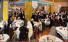 Bruce Cabot was maitre d' at Montmartre,[5] and its orchestra was led by Vincent Rose and Jackie Taylor.[10] Friday night was "celebrity" night. There was plenty of dancing, and even floor shows with dancers. In addition, men who sat at the "bachelors' table" made themselves available to ladies who wanted to dance at lunch. Special events included a dance contest, which Clara Bow won, Joan Crawford danced the Charleston atop a table, and Rudolph Valentino's tango is mentioned with honors.[5] Hip flasks were common during the prohibition era, and a bootlegger was available, too. On Wednesday and Friday nights, the cafe was frequented by columnist Louella Parsons looking for news.[1]