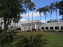 The Cairns City Council Chambers has considerable aesthetic and architectural significance, and together with its surrounding grounds and mature plantings, imbue a formal expression of classical interwar public architecture adapted to suit a tropical climate. The building makes a considerable contribution to the Cairns streetscape, and is an important member of a group of classically detailed interwar civic buildings designed to re-affirm the power and presence of government in the community.[1]
