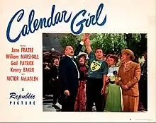 Calendar Girl is a 1947 American historical romantic musical film directed by Allan Dwan and starring Jane Frazee, William Marshall and Gail Patrick.[1] The movie was written by Lee Loeb, Mary Loos, and Richard Sale, The supporting cast featured Kenny Baker, Victor McLaglen and Irene Rich. This was Patrick's last film before retiring from acting in the wake of her marriage. It was produced and distributed by Republic Pictures. It was later reissued under the alternative title Star Dust and Sweet Music.