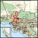 As of the 2020 redistricting, California's 30th congressional district is located in Southern California. Two sections of the district are within Los Angeles County, and the other two sections cover parts of northern Los Angeles.