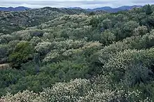 The group has also objected to similar plans by the U.S. Forest Service to clear native habitat in the Cleveland National Forest[6] and the Los Padres National Forest.[7] They argue that removing chaparral, through clearance or prescribed burns, promotes the invasive growth of non-native weeds and grasses which are even more of a fire hazard.[8] They have expressed concern that the combination of habitat clearance and massive wildfires, especially as the climate dries due to human-caused climate change, could eliminate much of the chaparral in southern California within a century.[9]