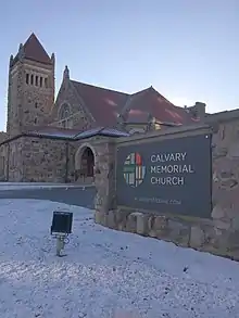 In the winter of 1915, a few families from about five different area churches, representing different denominations and traditions, gathered in a home with the idea of starting a new church. These founders wanted this new church to be free of denominational ties and yet faithful to the Bible. On March 21, 1915, Madison Street Church met for the first time in a rented storefront on Madison Street. Their first budget was less than $100. In 1937, the name was changed to Madison Street Bible Church, and in 1959 to Calvary Memorial Church, its present name. A fire destroyed much of the facility in 1977, after which the congregation rented facilities for two years until purchasing its present building on Lake Street in the heart of Oak Park from the First Presbyterian Church.[1]