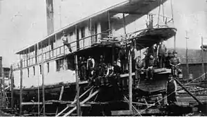From 1906 to 1912 Camano ran on a route from Coupeville to Everett.[2] H.B. Lovejoy's son, F.E. Lovejoy (1889–1940) served on board as a deckhand. He had also carved the nameboard for the ship.[3]