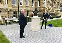 In October 2021 a bronze bust of Florence Nightingale by Hampshire-based sculptor Amy Goodman was unveiled in front of the hospital building by Goodman and Bob Weston, CEO of Weston Homes. For the bust, Goodman was inspired by books about Nightingale's life and referred to photographs taken of her by William Edward Kilburn in about 1856 and that taken by Claudius Erskine Goodman in about 1858. The bust sits on a plinth of Portland stone, often used for memorials and commemorative sculpture. The inscription was hand-carved by the memorial artist Maya Martin.[14][15]