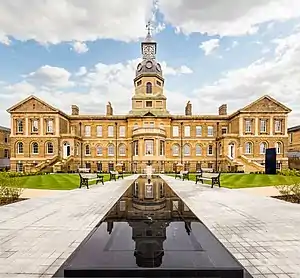 The hospital has been extended over the years. By 1893 two new angled pavilion wards were added at the ends of the main through corridor. Since 1931 many additions and alterations have been made, compromising the elegant initial design.[8][6]