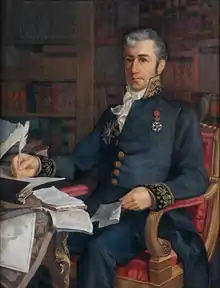 Born at Apt, Vaucluse,[4] he was at first intended for the navy, but the Revolution intervened. He emigrated and after his return devoted seven years to polishing his interrupted studies, beginning his public career modestly in 1802 as secretary to the commission that was charged with working out the Napoleonic Code rural. As an auditeur to the Council of State, 1806, he was sent to the Département du Rhin, which was being reorganized as a department integral to France. Refusing to desert his post with the Austrian advances of 1809 he was taken prisoner (11 June) and transported to Hungary; after two months he was released and presented at Schönbrunn to Napoleon, who charged him with presenting a dossier on the Habsburg strengths. On the basis of the swiftly accomplished report he was made Prefect of Rome (6 September).