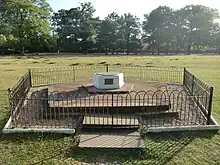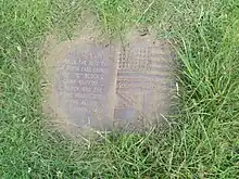 A brick pentacle and plaque commemorating the site
