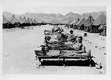 80th Infantry Division resting after extended desert maneuvers at Camp Iron Mountain in 1943