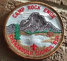 The summer camp programs include: aquatics (swimming, kayaking, stand up paddleboarding, canoeing, rowing, BSA Lifeguard, mile swim, polar bear swim, water carnival, and Aquaglide), backpacking, biking, camp wide games, camping, canyoneering, cooking, CRE elite, Firem'n Chit, Frontier program covering first year camper skills, fishing, handicraft (leatherworking, woodcarving, basketry), high adventure programs, hiking, hiking trails, Indian lore, Mountain Man Program including blacksmithing, nature, orienteering, overnight outpost adventures, Paul Bunyan, pioneering, rock climbing & rappelling on on-site natural rock, the Eight-Face Challenge Rock Climbing Program, safe swim defense, safety afloat, Scoutcraft, shooting sports (archery, rifle, shotgun), Totin' Chip, space exploration, volleyball (sand), wilderness survival, and youth leadership training.[14][15][16] Camper family members are invited to visit the camp on Friday nights for dinner; a Scout performed campfire program with skits, songs, and jokes; then an Order of the Arrow Callout Ceremony. Each Sunday evening at the camp chapel a short non-denominational service called Vespers is held. Units from Maryland, Pennsylvania, Virginia, and West Virginia most often frequent the property.[23] The Camp participates in Scouting's International Scout programs, and has had Staff from the United Kingdom, Poland, The Netherlands, Egypt, Mongolia, Mexico, the Dominican Republic, and Columbia in recent years. In 2010 campers spent 9,034 nights at Camp Rock Enon.[13]:2
