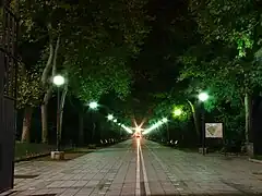 The Campo Grande (English: "Large Field") is a large public park located in the heart of the city of Valladolid, Spain. It is triangular, has a 115,000 m² (11.5 ha) surface and is bordered by the streets Acera de Recoletos, Paseo de los Filipinos and Paseo de Zorrilla.[1] Its main entrance is at Plaza de Zorrilla, where together with a modern bill gate lies a floral shield of the city. The park is enclosed around its perimeter by a simple fence that runs between pillars, with entrances on all sides.
