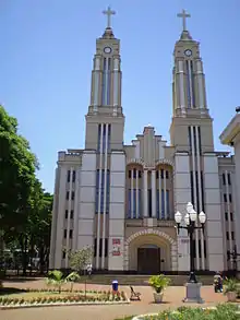 The Cathedral of St. Joseph Campo Mourão, episcopal see of the Roman Catholic Diocese of Campo Mourão, is based on the same design as the Mother Church of the Pure Heart of Mary of St. Benedict South.