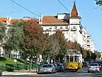 Clockwise: Igreja da Nossa Senhora da Conceição; Lisbon tram; Igreja de Santa Isabel; Casa Fernando Pessoa; streets of Campo de Ourique.