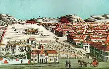 In 1942, with the construction of the Avenida Presidente Vargas and the demolition of several buildings nearby, the plaza was divided in two. One side featured the Palácio Duque de Caxias, the Brazilian Military Command building (1937), and the Panteão Duque de Caxias. The gardens of the Campo de Santana, a wide, tree-lined public promenade constructed at the beginning of the 20th century, is located on the opposite side of the plaza. Reforms of this area, as part of a city-wide project, began again in 1873 and were completed in 1880 by French landscaper Auguste François Marie Glaziou. Several species of animal are present in the Campo de Santana park, including: agoutis, cats, wild ducks and peacocks.[1] A little-known fact about the park is that it used to be the site of bullfights. They were popular spectacles until they were banned in 1907 by decree of the mayor, Francisco Marcelino de Sousa Aguiar.[2][3]