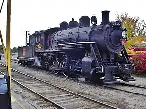 Smith was working on founding the Conway Scenic Railroad, which opened in 1974.[2][4] After purchasing the engine, it was moved to Rigby Yard in South Portland, Maine, in October 1968.[1] After sitting in Portland for three years, it was moved to North Conway, New Hampshire, in 1971, were it went through a three-year restoration.[1] Subsequently, the locomotive returned to active service on August 3, 1974, and was renumbered as Conway Scenic No. 47, making its excursion return run on August 4, 1974.[1][5] It was the new railroad's only locomotive in its earliest years. The engine was renumbered back to No. 7470 and the Canadian National paint scheme were restored in 1989, according to Railfan & Railroad magazine.[2][6]