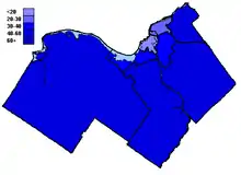 ![]() Map of the region's ridings in 1984. Colours show the result from the 1984 election |
